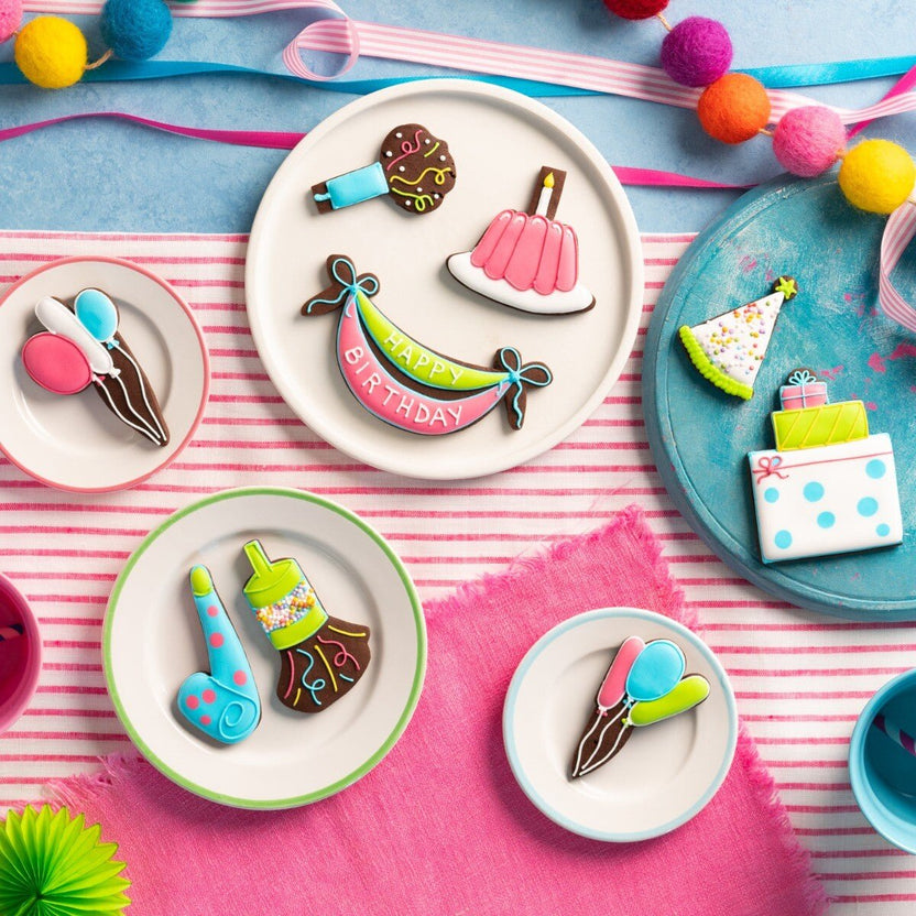 All your favourite birthday traditions – balloons, cakes, party hats and presents – transformed into nine hand-iced chocolate biscuits, nestled in our iconic keepsake tin. It’s the birthday party that fits through the letterbox and doesn’t involve hoovering glitter out of the carpet.